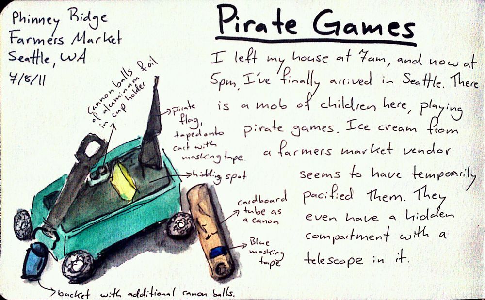 While drawing this, I'm enjoying a grilled vegetable quesadilla from the Patty Pan Grill tent. It's full of fresh crunch green vegetables, including pretty marbled squash. I'm listening to live folk music played by Clallam County (http://sites.google.com/site/clallamcounty/home). It's a lively community gathering. And now that Mary has joined me, I think I'm going to commandeer myself some Earl Grey Chocolate ice cream.