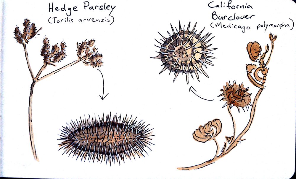 Jen and I went hiking today at one of our favorite spots and ended up on an unusually pestiferous nature walk. We saw two skittering lizards and a flock of quail, one little snake and a pretty good sized rattlesnake. More noticeably though, we were followed by a swarm of flies and snagged by an assortment of spiny hitchhikers.