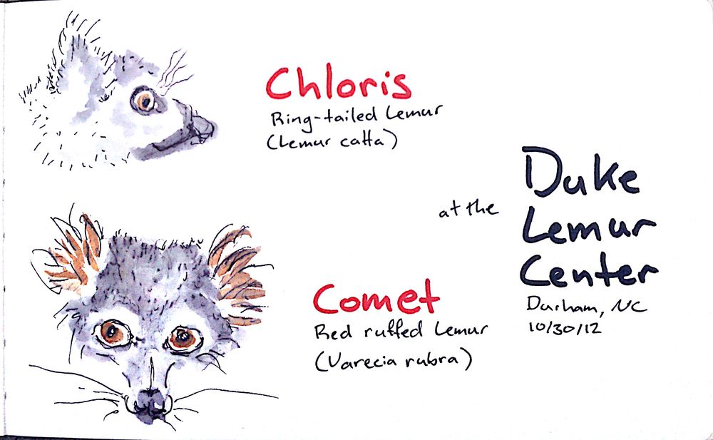 Here are Chloris and Comet, two of the residents at the Duke Lemur Center. The Center is nestled inside a green and yellow forest of oak, maple and tulip poplars. On warm days, many of the Lemurs live in the forest to mimic their natural habitat. Today was chilly and both me and the lemurs are enjoying the warmth inside.