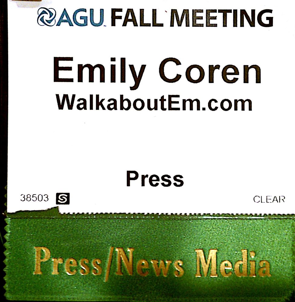 I’ve got a press badge for the American Geophysical Union. It’s a huge meeting of Earth and Space scientists from around the world. Write in and suggest talks you’d like me to write about for the 1:40pm session on Wednesday!