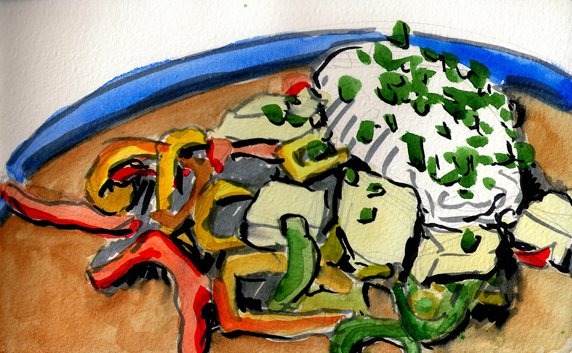 Autumn foods are starting to gain real traction at the farmers market now. One of my husband’s favorite market treats is peppers, so when fiesta packs with a beautiful array of seasonal peppers popped up, I bought him some and made dazzling rainbow fajitas with them.