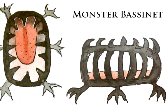 And this fanciful bassinet… Every kid needs a bassinet with teeth, right? Because sleep is more restful if you think your bed is trying to eat you…