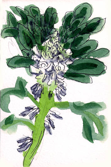 Cover cropping is a method of managing soil health, it fixes nitrogen in a biologically active form, adds biomass to the soil, reduces pests and weeds. You alternate your vegetable crops, with often in the winter, vetch and grains. In the spring right when it starts to flower you cut it up and till it into the soil. It’s all around a good agricultural practice. This is just my second year cover cropping my community garden plot. The first five years I was too tempted by the mild California weather, I planted vegetables year round. Each year, despite adding compost, my plants got smaller and smaller. My garden mates who cover cropped got these huge bumper crops that made me jealous (and kinda amazed). So, now I cover crop. This is some of the blooming Vicia faba, its really very beautiful.