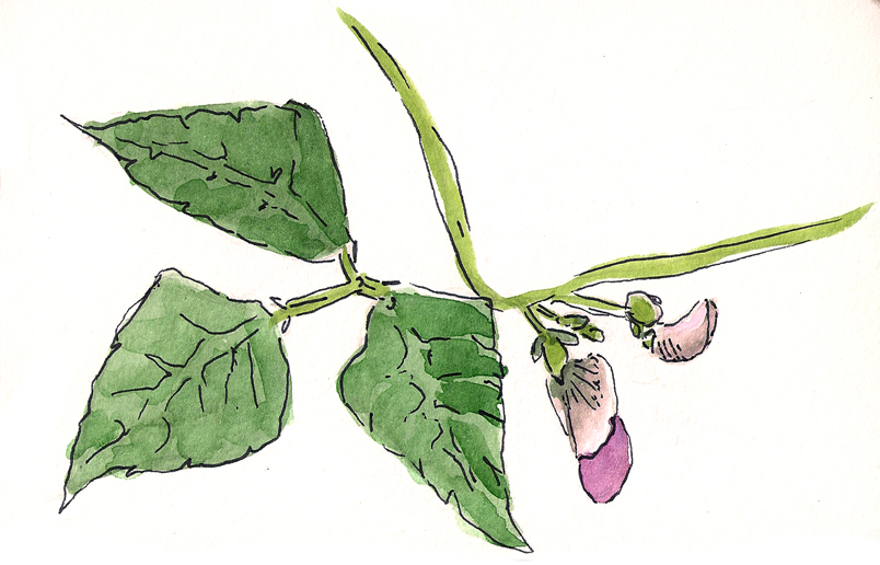 Another really fun plant has been Emerite Pole Filet Beans (Phaseolus valgaris ‘Emerite’). They all germinated beautifully with cute little trios of heart shaped leaves, and then leaped up the provided trellis. They have provided a handful of green beans about every other day, even from my small garden box. They probably would have been even more plentiful, but I coplanted them with the poppies, which are out competing them a bit. These are the delicate purple flowers they grow, before the beans develop. (http://info.reneesgarden.com/seeds/vegetables/bean-pole-filet-emerite/)